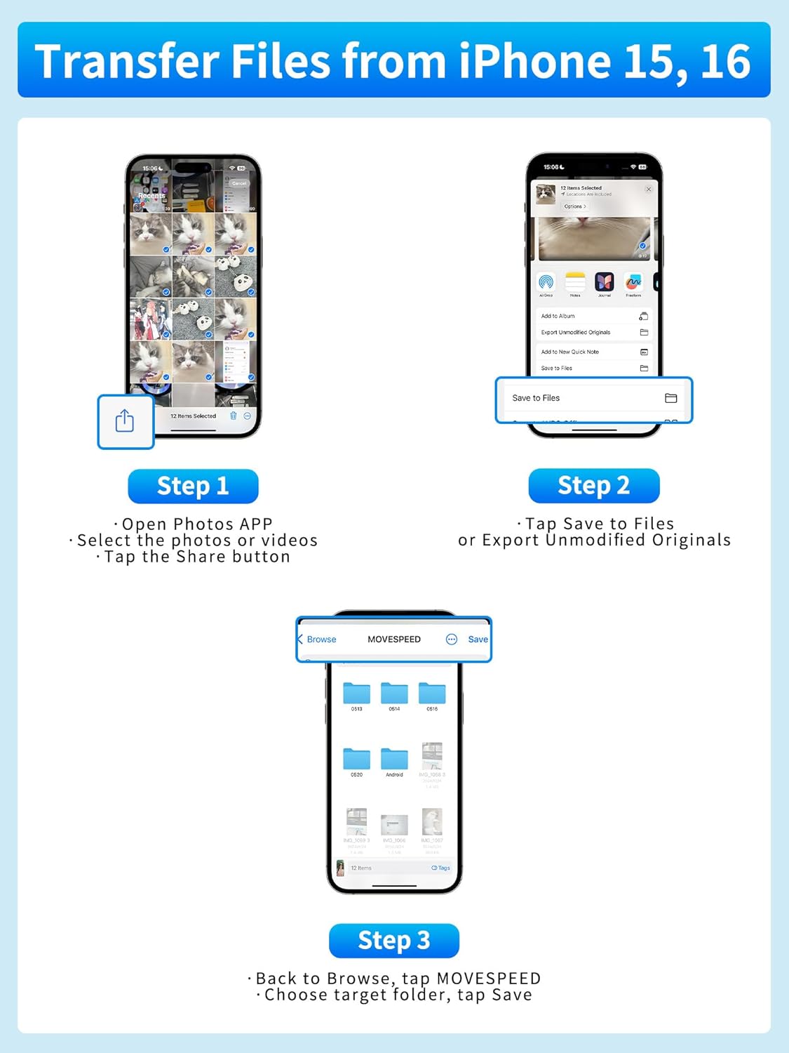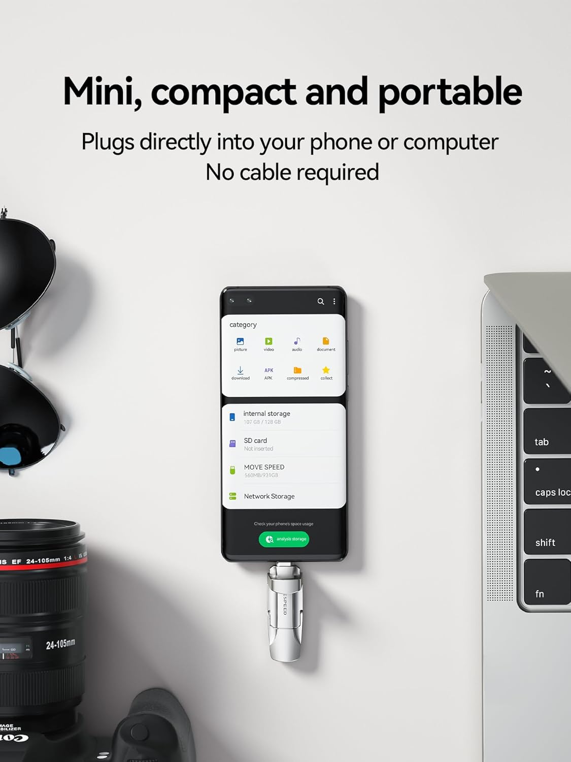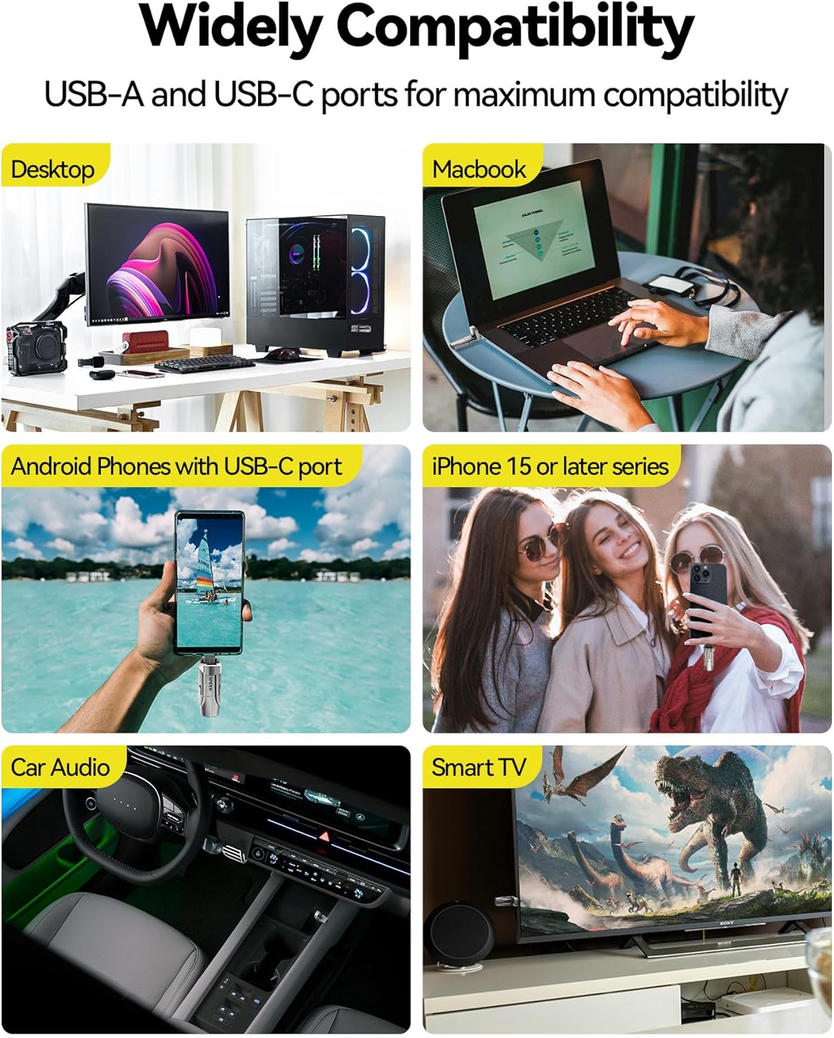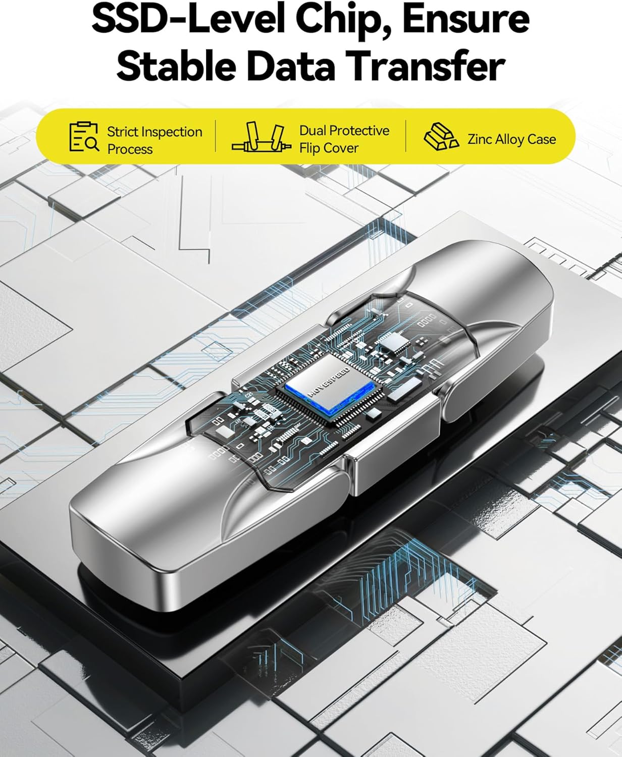 Specification: MOVE SPEED 128GB Solid State Flash Drive 400MB/s High Speed Type C + USB 3.2 Drive Dual Port, Thumb Drive Compatible with iPhone 15, 16,17 Series/Android Phone/MacBook/Audio/Smart TV(1 Pack)