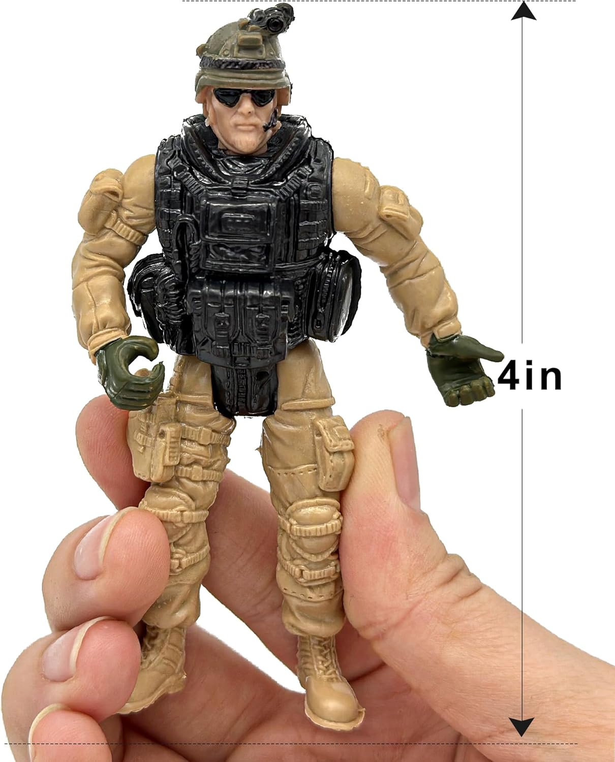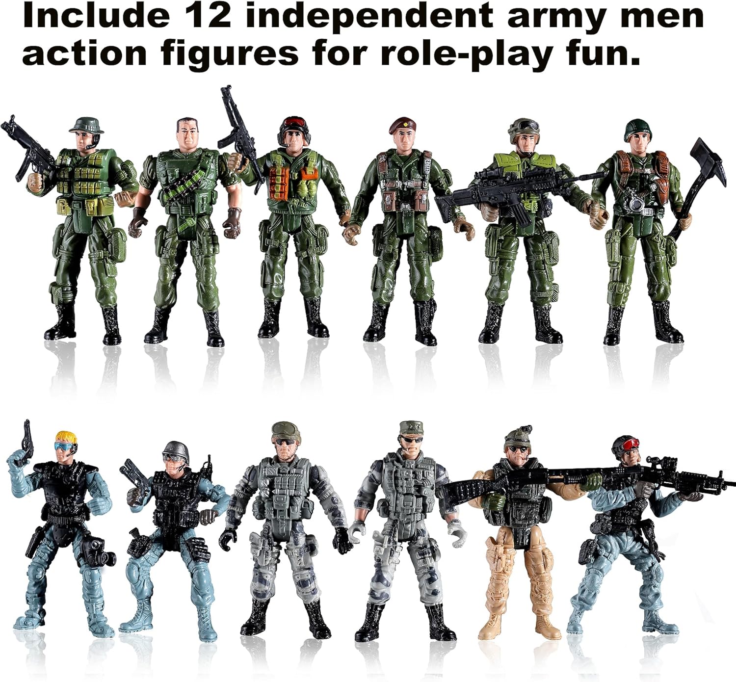 Are you looking for the ultimate army men action figures set for your kids or as a gift for toy collectors? Look no further! Our army men set includes 12 highly detailed and independent action figures. The set includes 6 US soldiers and 6 special forces combat soldiers, allowing you to set up realistic battle scenes.