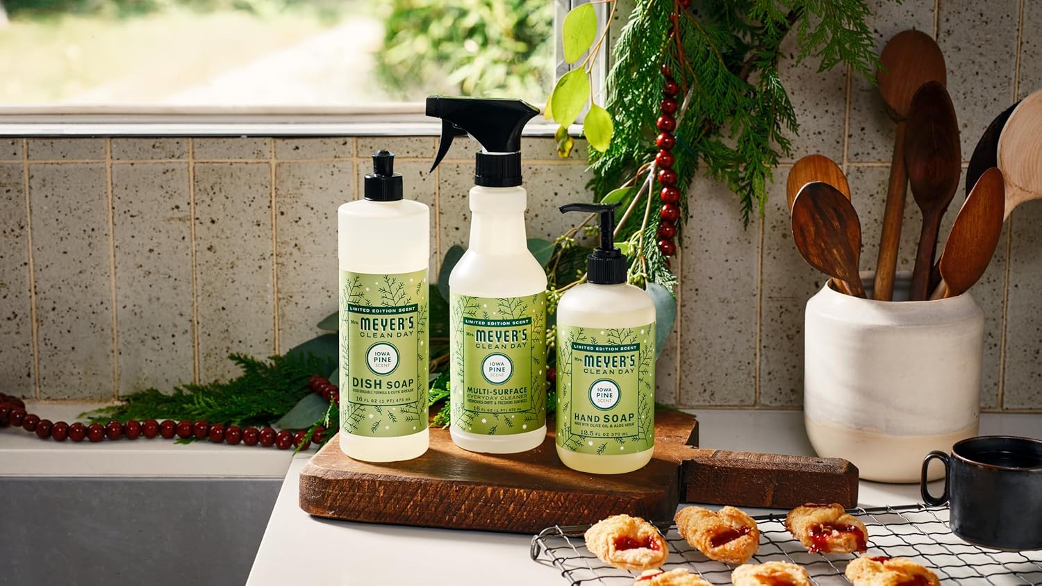 Mrs. Meyer’s Clean Day Multi-Surface Everyday Cleaners feature hardworking yet gentle multi purpose cleaning agents, while also providing a special, singular scent for your home. Festive Iowa Pine scented cleaner, with a touch of clove and cedar, has a scent as wonderful as a freshly cut tree. What could possibly be merrier? We combine garden-inspired scents, essential oils, plant-derived and other thoughtfully chosen ingredients to clean kitchen messes and all over the house. Our cleaning spray is great on all non-porous surfaces such as finished wood and tile floors, countertops, walls, porcelain, bathroom fixtures, sealed natural and synthetic stone, and more. Available in other garden-inspired scents and biodegradable formula products such as dish soaps and laundry detergents! Mrs. Meyer’s – Rooted in Goodness.