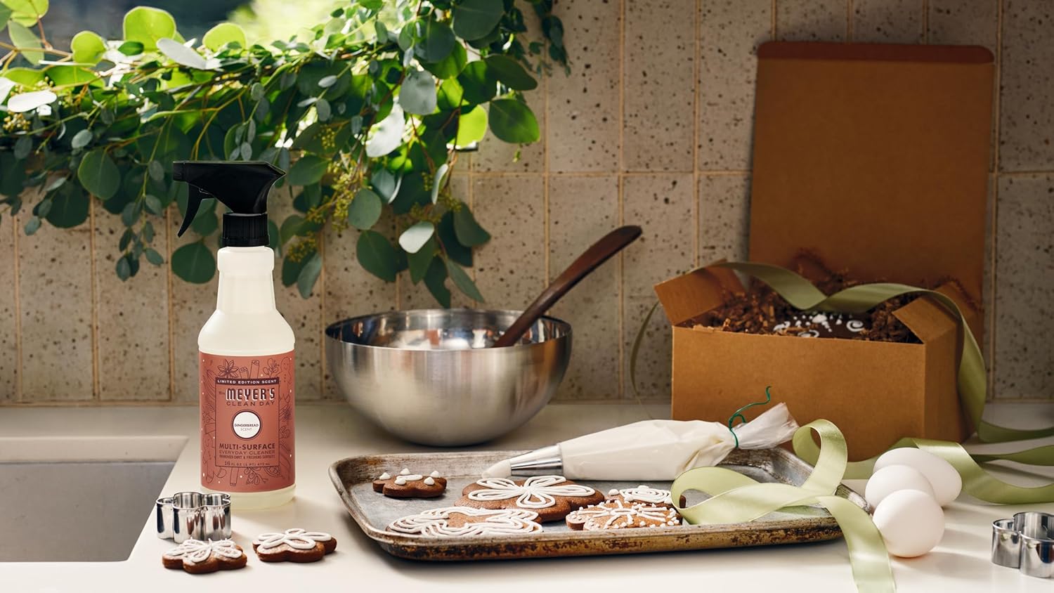 Here at Mrs. Meyer’s we’re so excited! And the reason why is that we’ve come up with a lovely new limited edition scent for the special season. It’s called Gingerbead, and it’s available in our Mrs. Meyer’s Clean Day Multi-Surface Everyday Cleaner. That means that while you’re getting the job done, you can enjoy this delightful new scent. Fresh out of the oven Gingerbread. Warming nutmeg and spiced cinnamon bring back cozy kitchen memories. Plus, sweet brown sugar, the icing on top!. We’ve combined this seasonal Gingerbread scent with essential oils and plant-derived multi purpose cleaning ingredients to clean messes in the kitchen and all over the house. This stainless steel cleaner, glass stove top cleaner and bathroom cleaner is also great for all non-porous surfaces, such as finished wood and tile floors, countertops, walls, porcelain, bathroom fixtures, sealed natural and synthetic stone, and more. Make sure to make it a part of your everyday cleaning supplies. It’s made with thoughtfully chosen ingredients. And our formulas are cruelty-free and never tested on our animal friends. This limited edition Gingerbread seasonal scent is also available in other pleasant products you’re sure to enjoy, such as Liquid Hand Soap, Dish Soap and Soy Candles. So go ahead, share the excitement. Make the most of this special time of year and bring the coziness of the Gingerbread scent into your home. Mrs. Meyers – Rooted in Goodness.