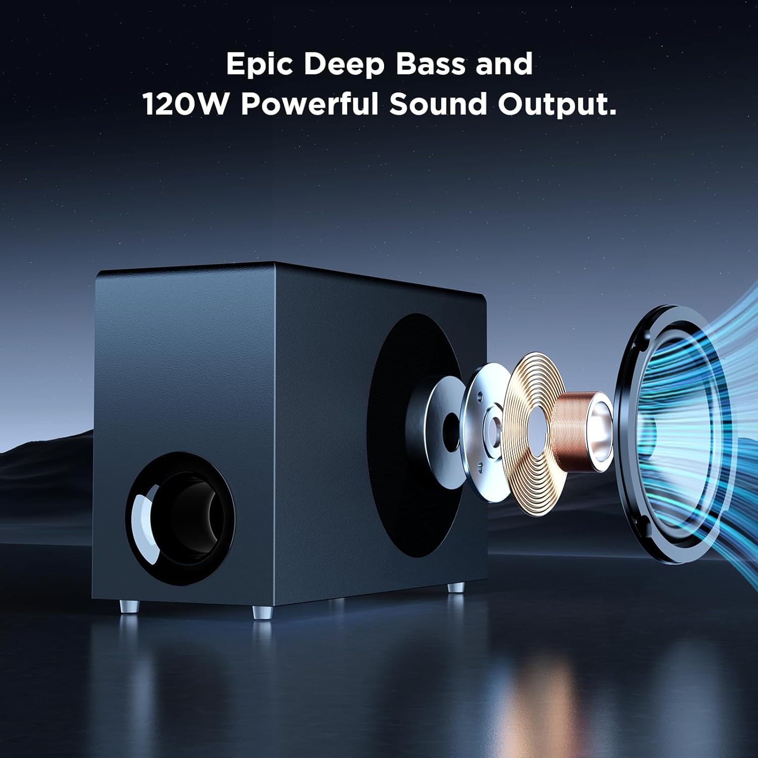 Our soundbar with subwoofer delivers powerful bass and crystal-clear treble, bringing movies, music, and games to life. Enjoy a true theater-like experience in the comfort of your home.