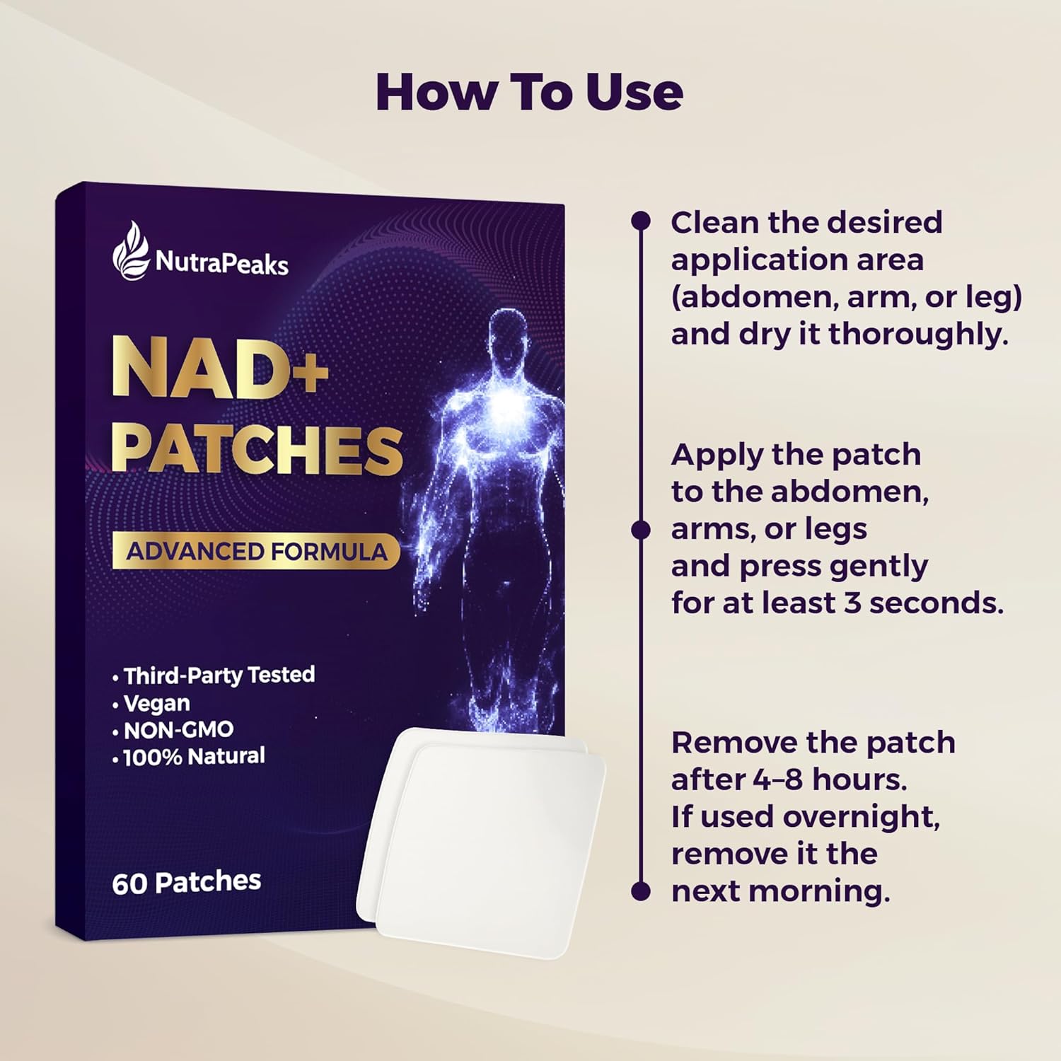 NAD Patches for Women & Men | NAD+ Patch for Energy & Healthy Aging | with CoQ10 & Nicotinamide | 60 Day Supply
