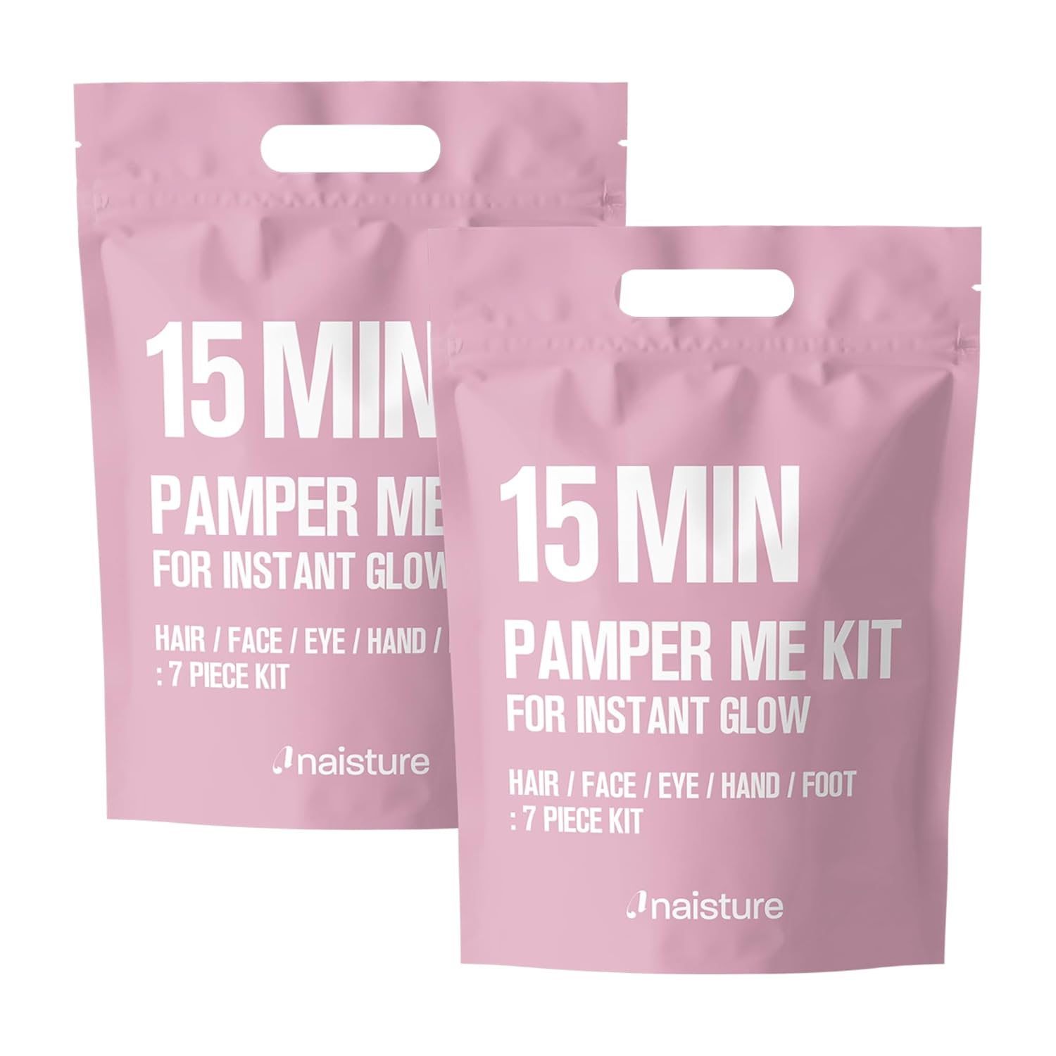 Naisture 15 Min Pamper Me Kit Duo (2-Pack) Spa Skincare Gift Set for Women with Hair Masks, Hand & Foot Masks, Eye Masks and Face Masks