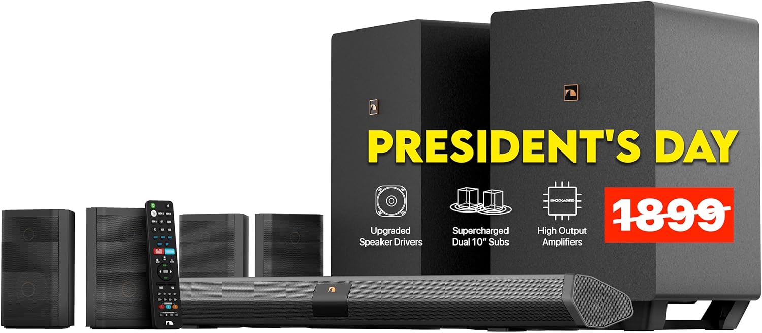 PRESIDENT’S DAY, WHILE SUPPLIES LAST @ $1199 (save $700). MEET THE REINVENTION OF #1 RATED DOLBY ATMOS SOUNDBAR. Designed based on 70+ years of audio excellence and feedback from 5000+ reviews from existing owners, we have supercharged our flagship with unmatched 360° surround & bass performance. Powered by SSE MAX – a unity of ultra high performance hardware & software – get ready for a powerfully convincing audio experience like never before with upgraded Dual Wireless Subs and Four Modular Surround Speakers (2nd Gen). Setup within 30 min.