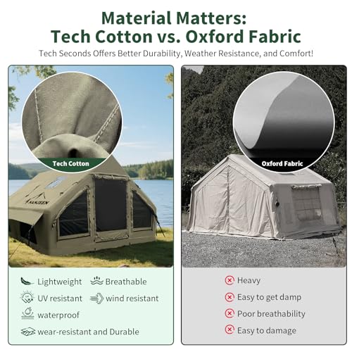 Built Better Than Oxford Fabric —Crafted from advanced waterproof tech cotton that outperforms most Oxford fabrics, this tent offers better resistance to tearing, improved durability, and reduced condensation. Designed for long-term outdoor use, it stays strong, dry, and comfortable in changing conditions.