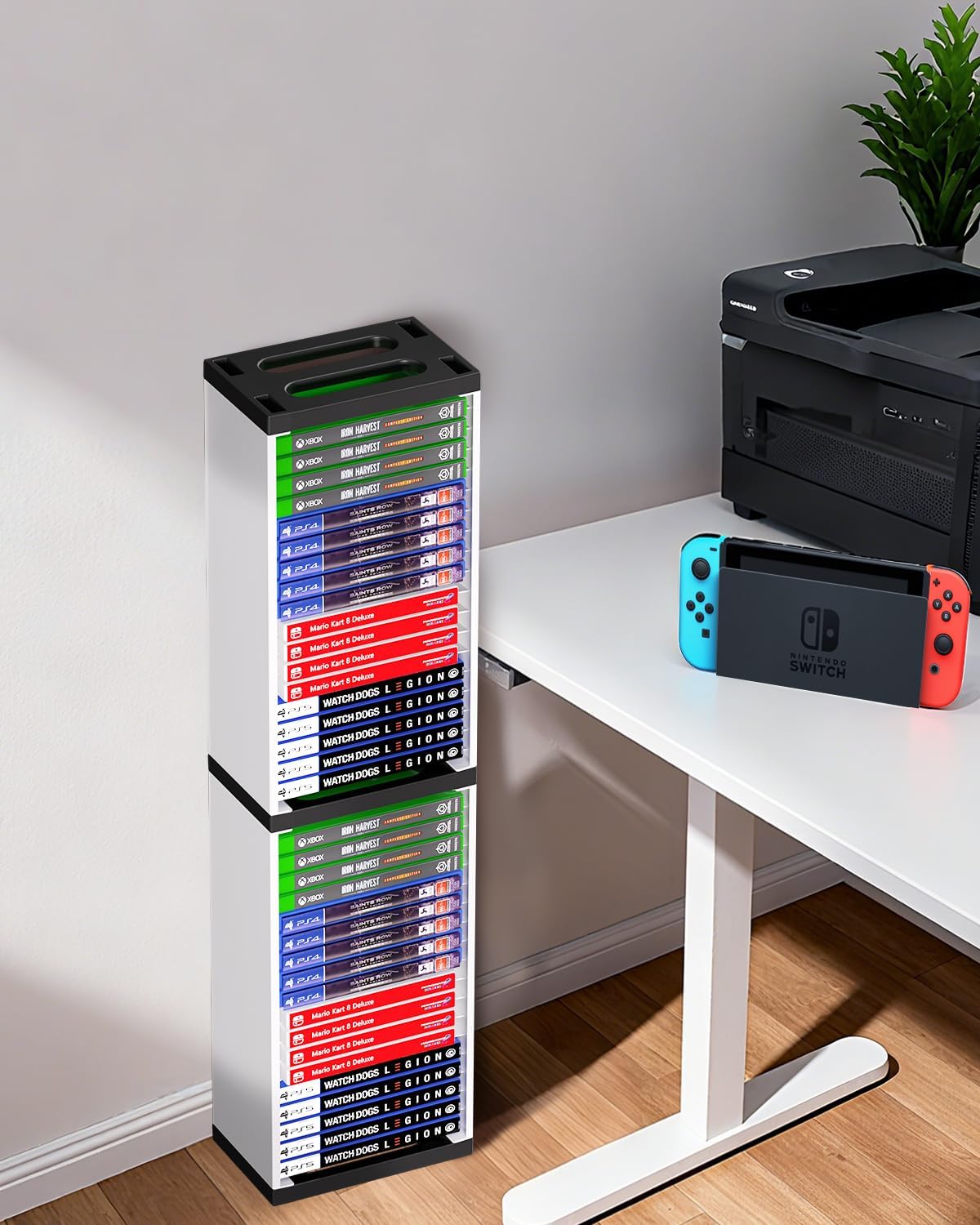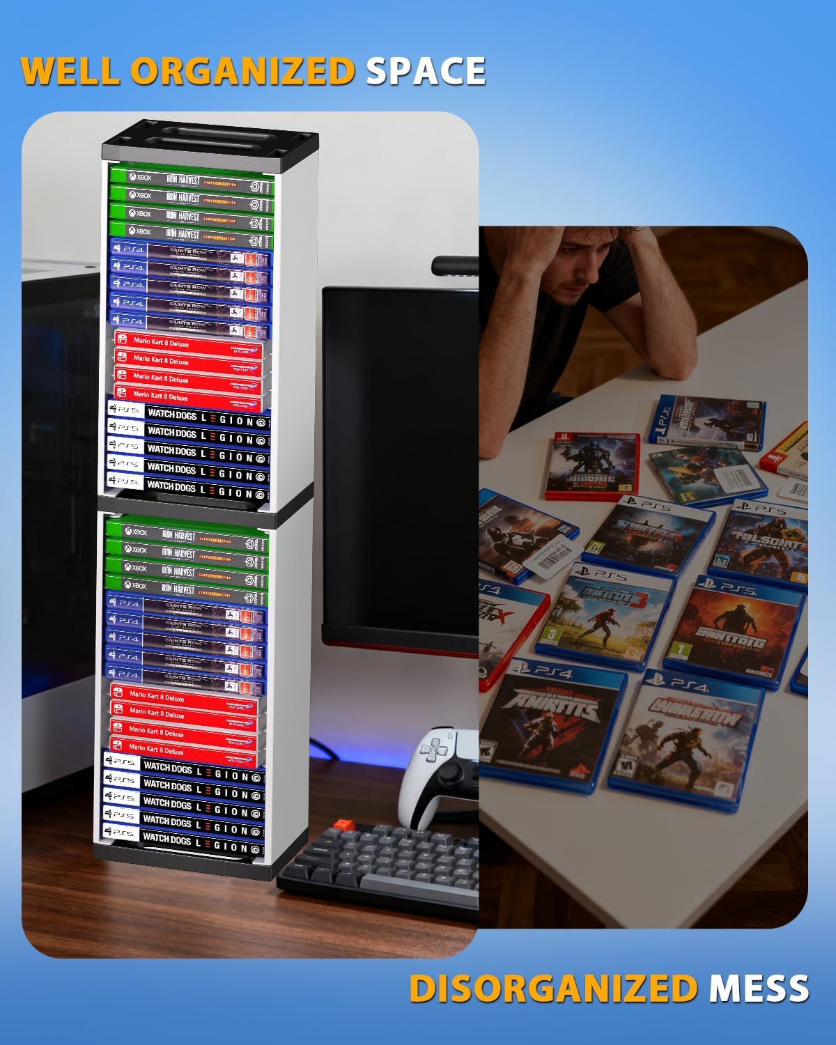 Nargos Video Game Storage Stand Tower for PS5/ PS4/ PS3/ Xbox Series S & X/Xbox one Game, Universal Game Disc Holder Vertical Blu Ray Case Organizer