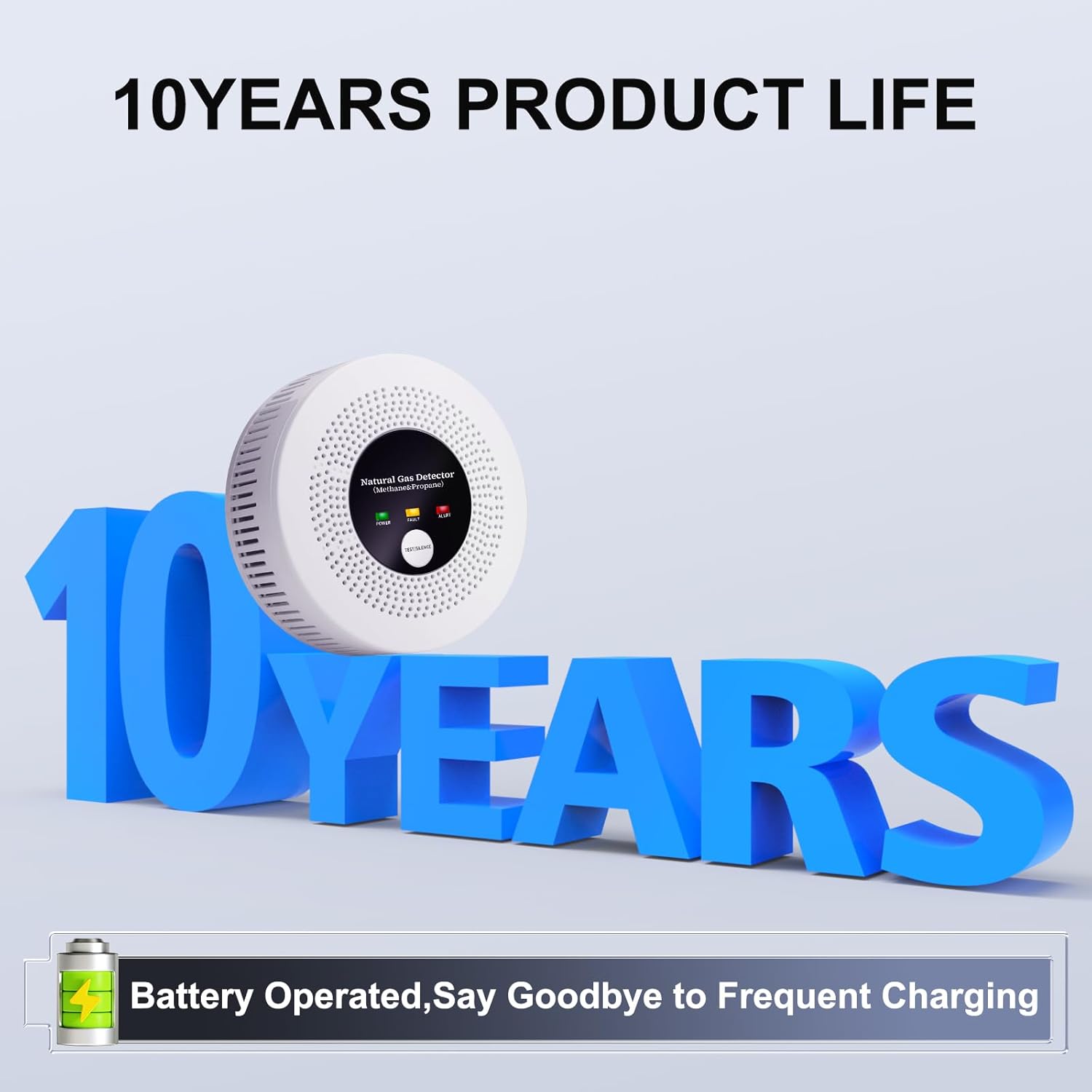 【10-Year Smart Safety Guardian】 Industry-leading lifespan with auto-expiry detection – yellow LED flashes when replacement needed. 3xAA battery operation (included) with low-power design ensures 24/7 protection without wiring.