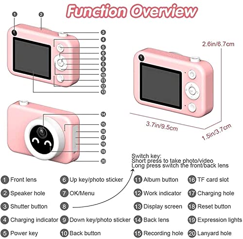 2.4inch HD Screen:The kid digital camera is equipped with front-facing camera and rear-facing camera, and the photo resolution can be up to 4928*3264, and video resolution can be up to 1280*720.