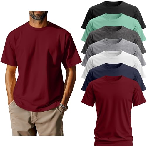 Neer 7 Pack Men’s Big and Tall Shirts Summer Cotton Short Sleeve Tee Crew Neck Casual Top Basic Oversize T Shirts(Black, Lake Green, Dark Gray, Light Gray, White, Navy Blue, Wine Red,7X-Large)