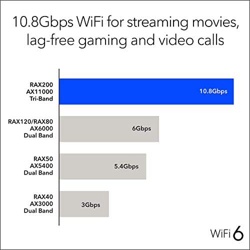 NETGEAR Nighthawk WiFi 6 Router (RAX200) 12-Stream Gigabit Router AX11000 Tri-Band Wireless Speed (Up to 10.8 Gbps) Coverage Up to 2500 sq.ft. and 50 Devices