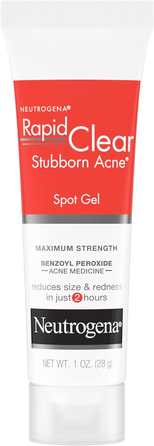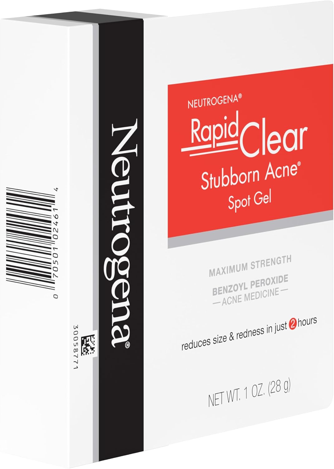 Neutrogena Rapid Clear Stubborn Acne Spot Treatment Gel, Maximum Strength 10% Benzoyl Per-oxide Treatment Medication for Acne Prone Skin, Pimple Cream Reduces Size & Redness, 1 oz