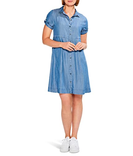 Price: $150.60(as of Jan 13, 2026 04:18:56 UTC – Details) Woven shirtdressMissy length: 37″ long Falls above kneeA-lineButton frontShirt collar Short sleeve Roll tab sleeve [product_summary]