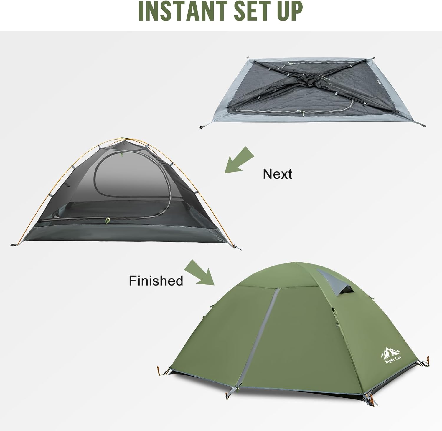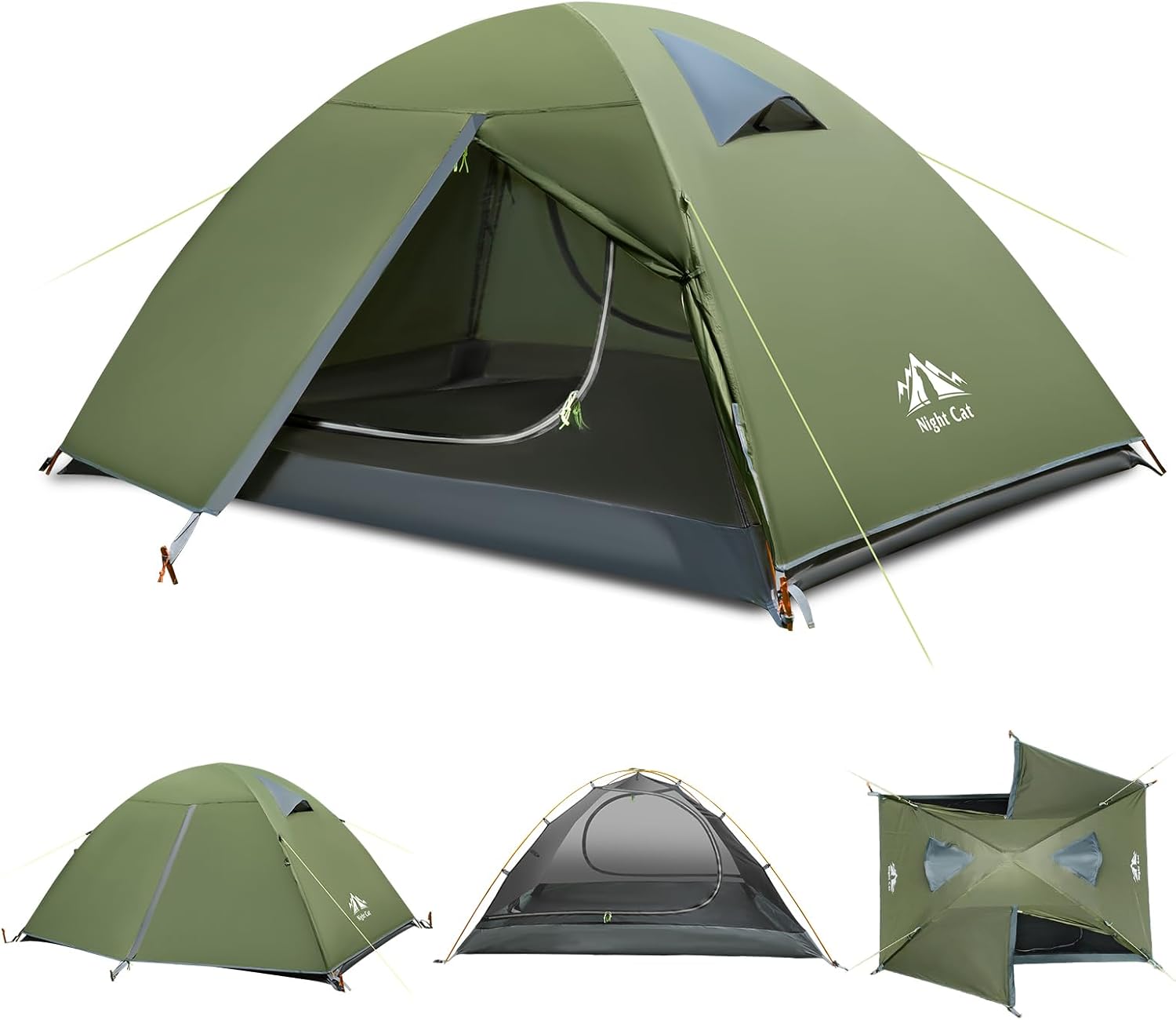 Specification: Night Cat 2-Persons Backpacking Tent: Waterproof Lightweight Camping Tent for Two People Hiking Outdoor Mountain with Aluminum Poles and Rainfly Green