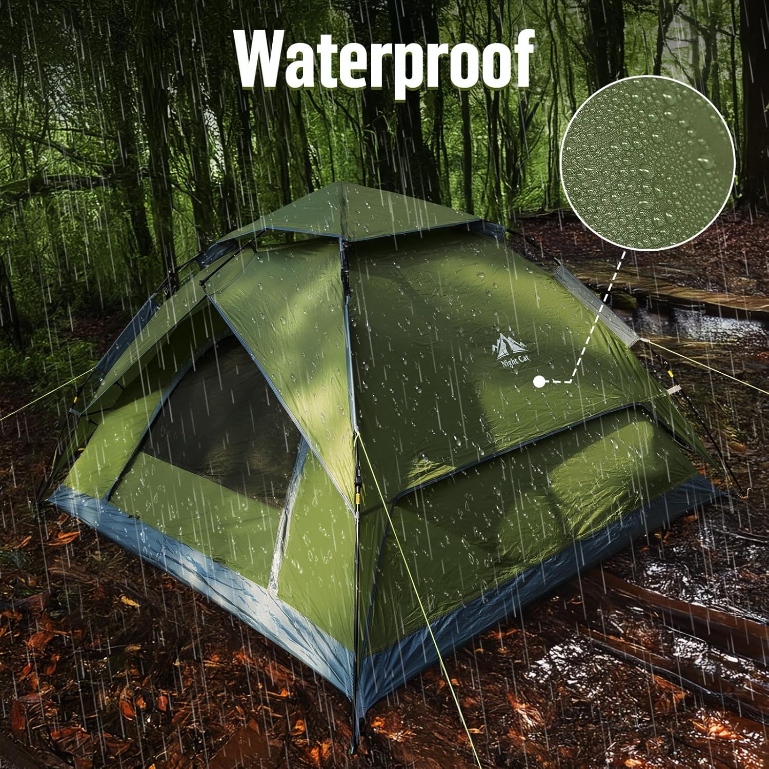 Night Cat Instant Popup Tents 2-3 Persons with Footprint Tarp Easy Setup Camping Tent with Rainfly Double Layers Waterproof Automatic Hydraulic Mechaism