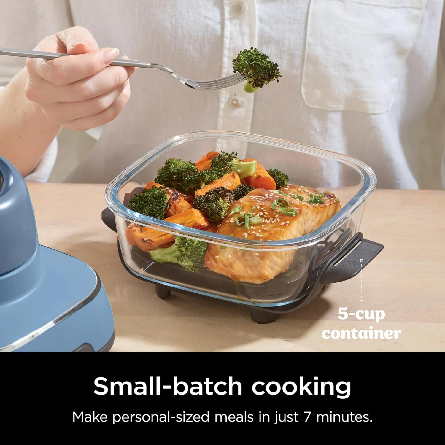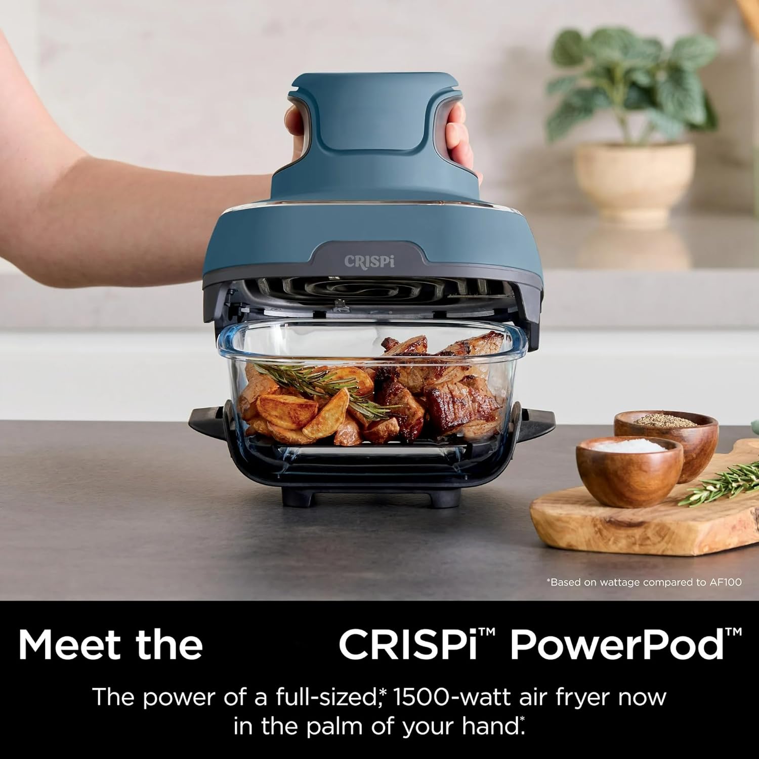 Niinja Crispi Glass Air Fryer System, 3-in-1 with 4-Qt & 5-Cup Containers, Microwave & Freezer Safe, 1500W (Blue)