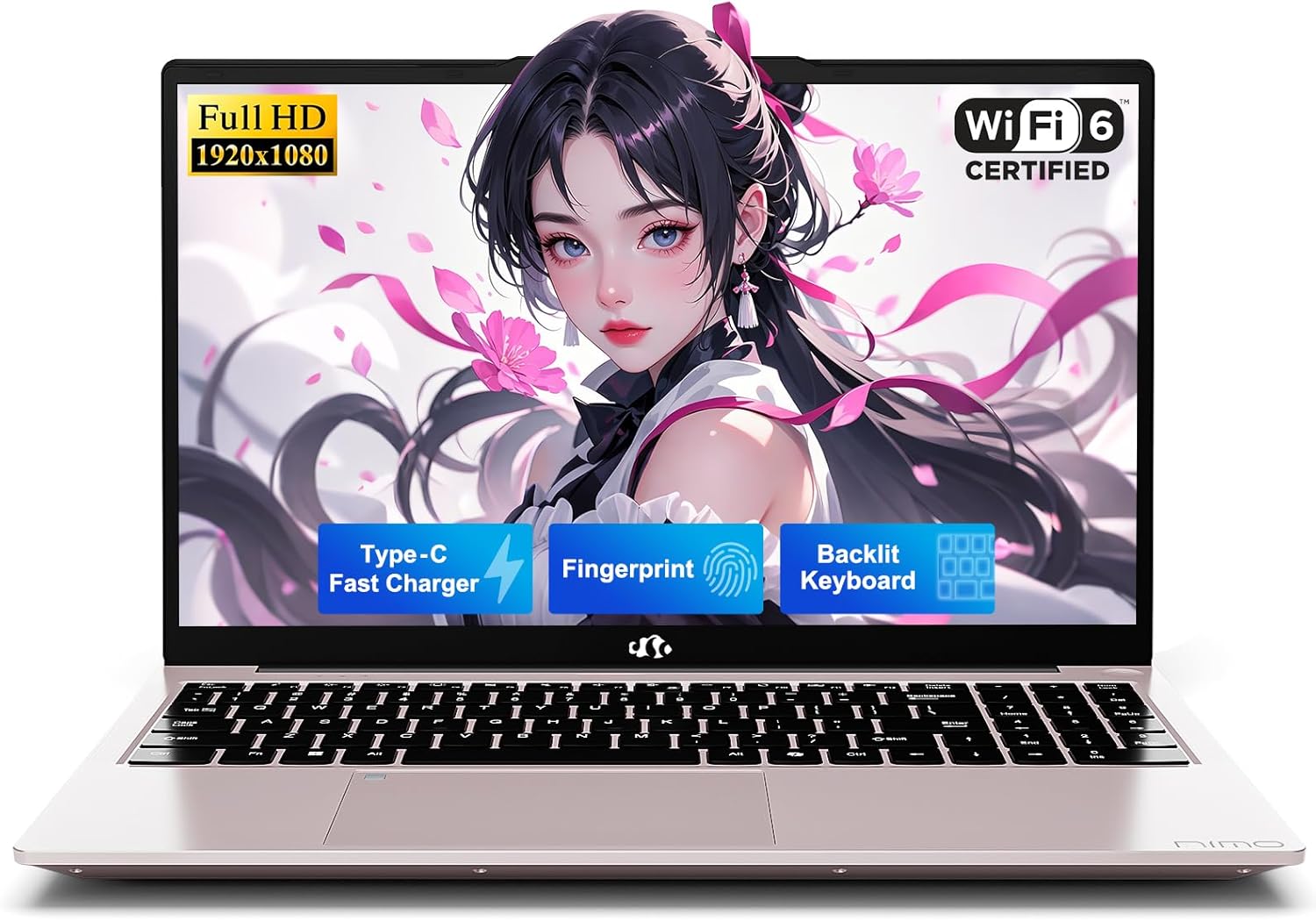 NIMO 15.6″ IPS FHD-Student-Laptop, 4GB RAM 128GB SSD Intel N150(Beat to i3-10110U, 4 Cores Up to 3.6GHz) Computer with 65W Type-C, Fingerprint, Backlit Keyboard, Wi-Fi 6, BT5.2, 2 Years Warranty