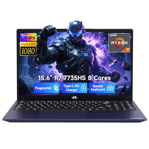 NIMO Gaming-Laptop, 15.6″ Computer with AMD 8 Cores Ryzen 7 7735HS (Beat i7-12650H, Up to 4.75GHz), 16GB DDR5 2TB SSD Business Laptop with Radeon 680M Graphics, 100W Type-C, Backlit KB, Fingerprint