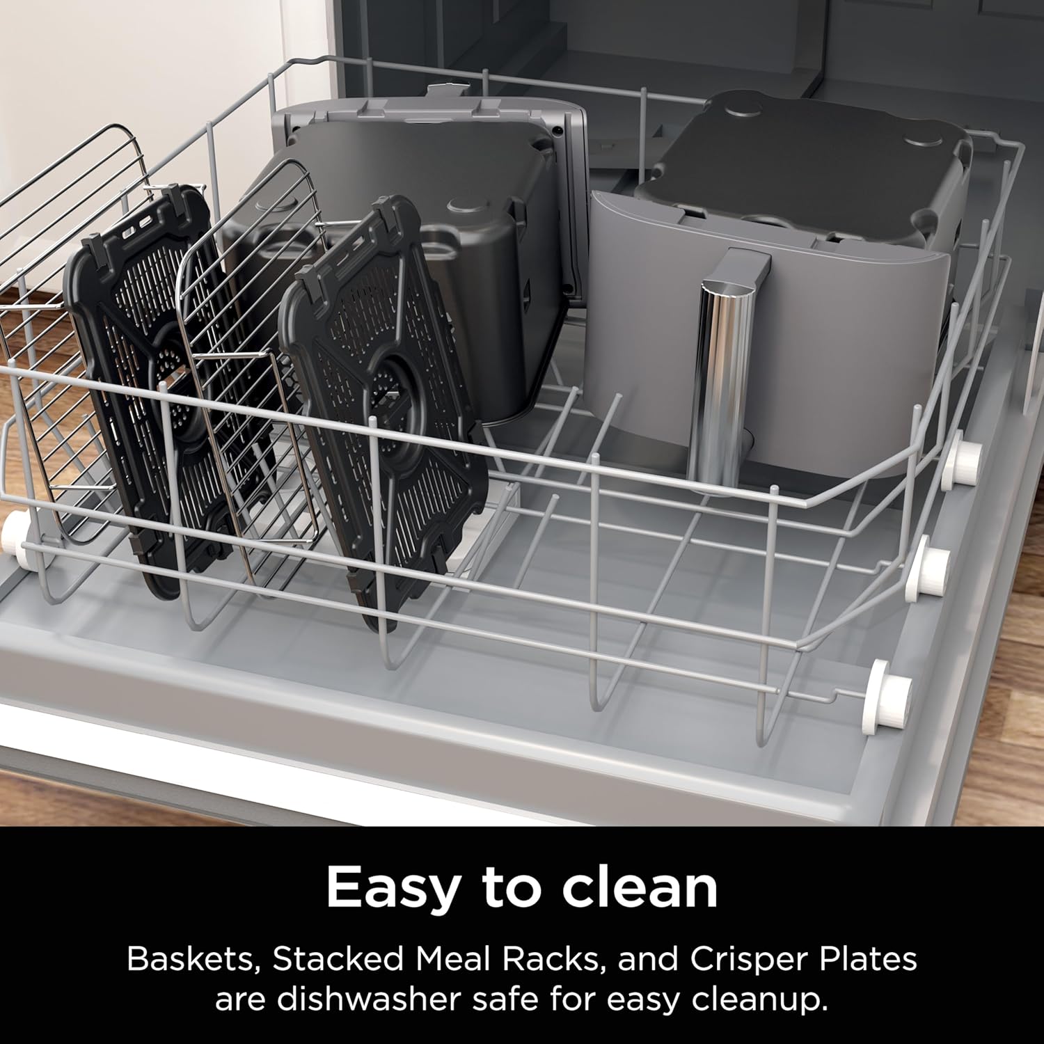 COOK 4 FOODS WITH STACKED MEAL RACKS: Includes 2 removable stacked meal racks allowing you to cook on 2 levels per basket. Superheated air surrounds both foods in each basket for an all-around crisp.