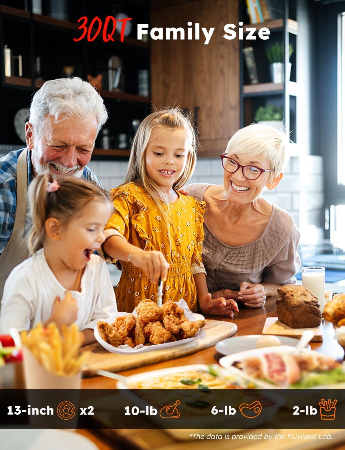 2X MORE EVEN: This Air Fryer Toaster Oven utilizes the latest 2025 upgraded Ultra-Fast Convection System, combined with top and bottom heating elements, virtually eliminating temperature variations even when cooking on multiple racks. Compared to other brands, Nuwave offers twice the uniformity and efficiency. Save you both time and energy.