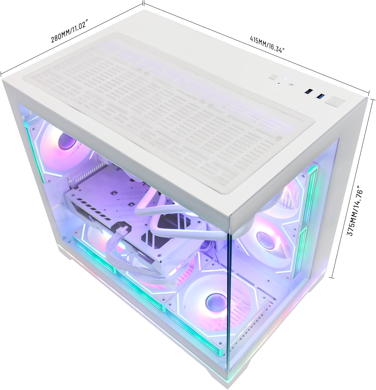 【Water Cooling System & RGB FUSION 2.0 APP Fan Control】 360AIO water cooling system | 9 X ARGB PWM fans—The lighting controller of this PC is controlled through software instead of a remote control, which is more convenient for customers and eliminates the worry of losing the remote control and not being able to replace the lights.