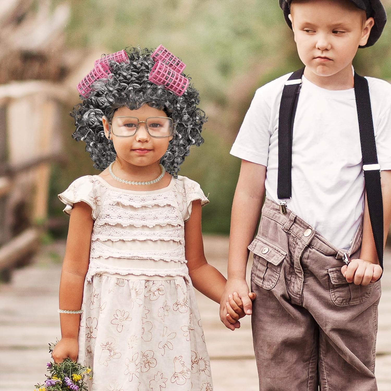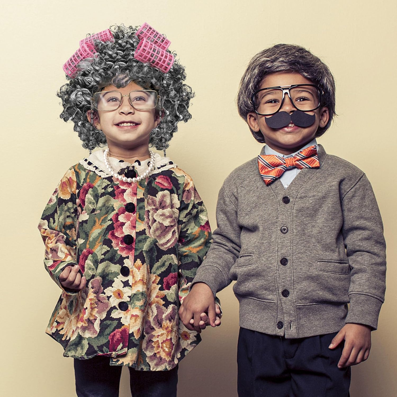 Suitable Size – Dress up as an old lady with our kids’ cosplay props. The curly wig measures 23 inches, the wig cap is elastic, making it suitable for all kids. With a 16.53-inch pearl necklace, a 7-inch pearl bracelet, 5.11-inch grandma glasses, a 25.7-inch glasses chain, and 4 pieces 2.55-in hair rollers.