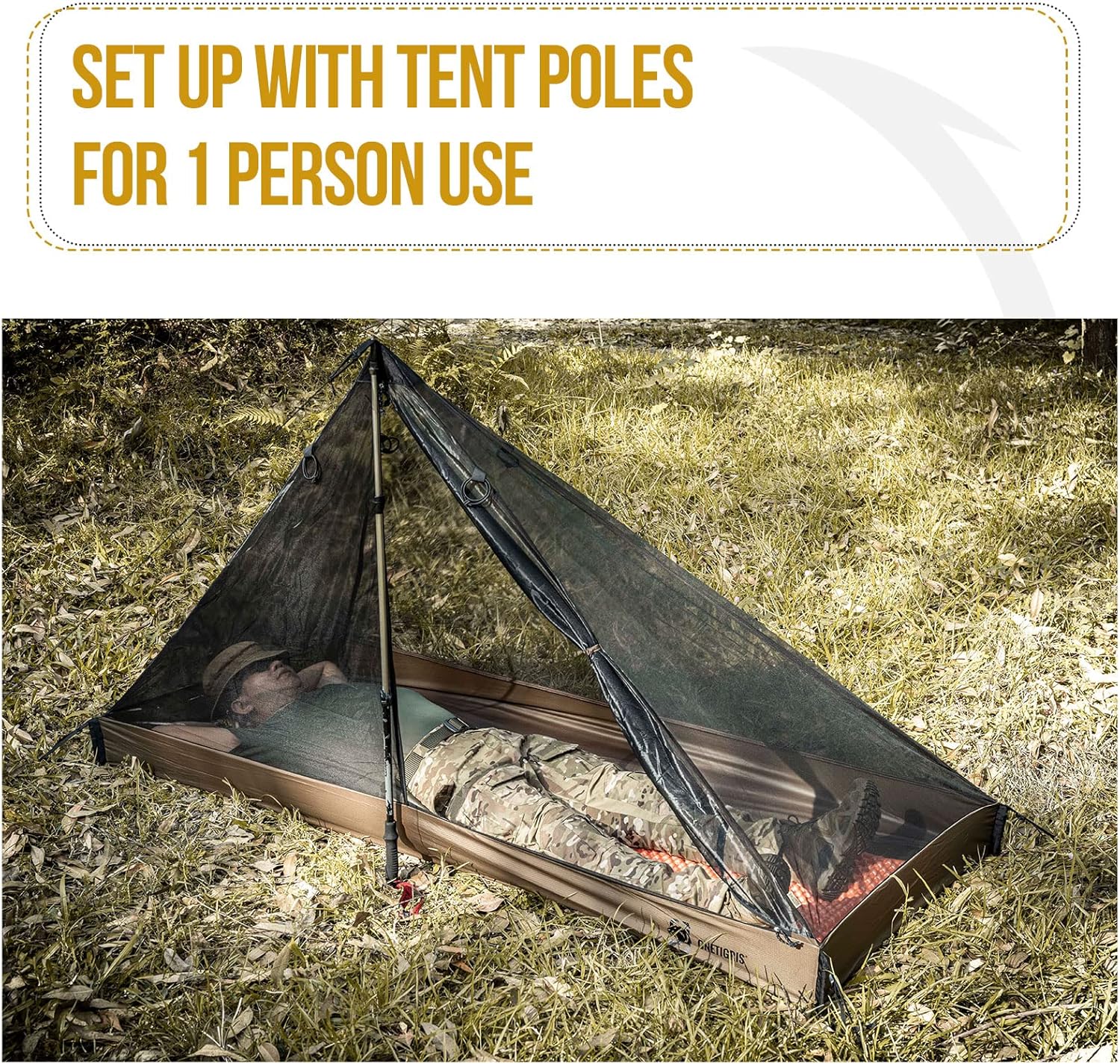 OneTigris Mesh Teepee Tent, Ultralight 1 Person Screen Room with Waterproof Bathtub Floor for Outdoor Camping Hiking Backpacking Bushcraft Tarp Hot Tent Shelter