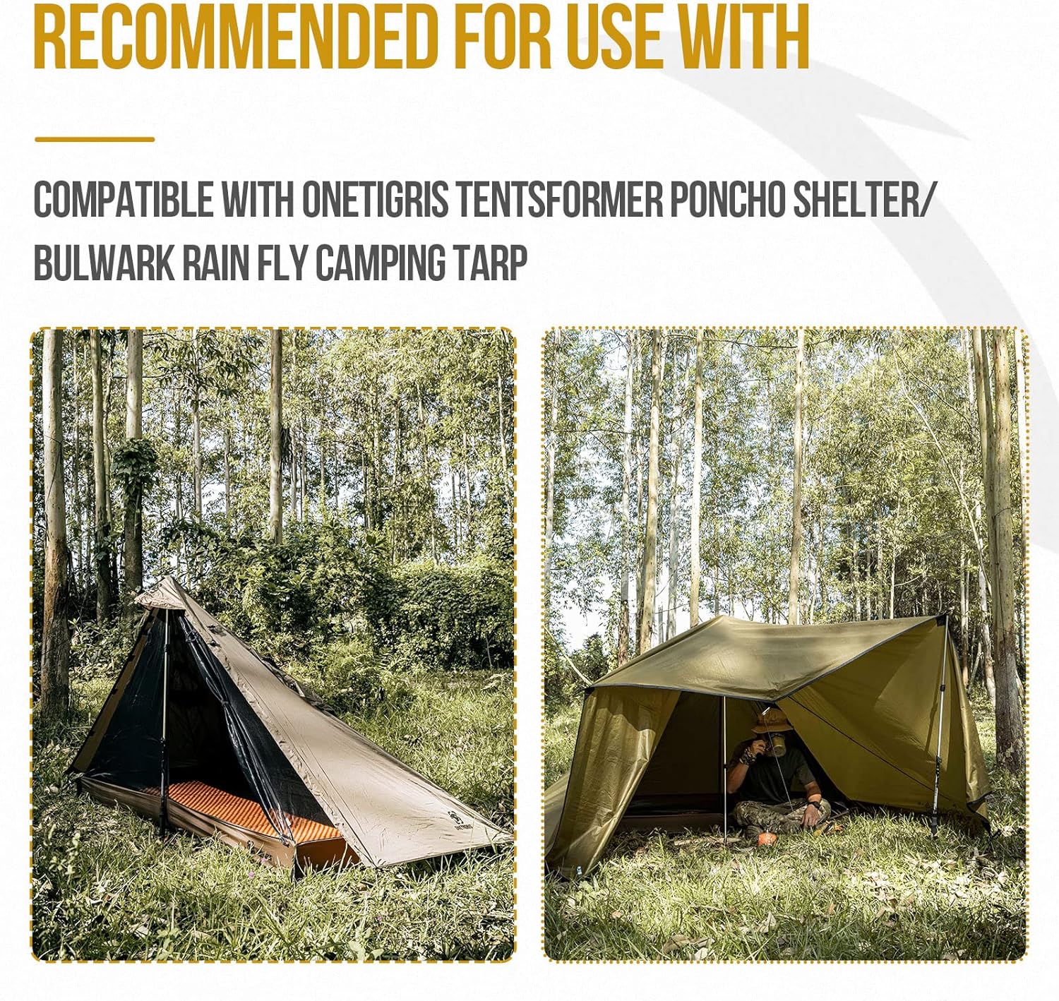 ➤ Compatible: With elastic cord on the top, compatible OneTigris TENTSFORMER Poncho Shelter, BULWARK Camping Tarp, SMOKEY HUT, IRON WALL, PYRAMIS Chimney Tents, or other large camping tarps, tipi hot tents and shelters, etc