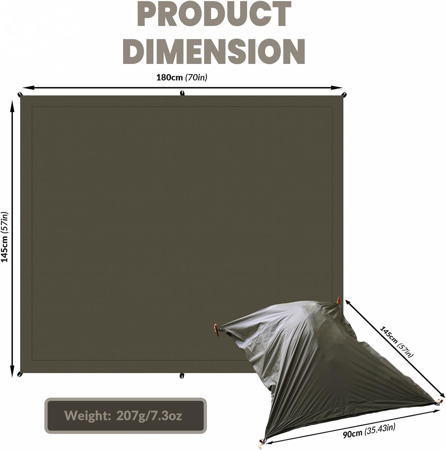 CLEVER AND FUNCTIONAL. This Ultralight backpack cover is designed not only to protect your bags but also doubles up as a tent footprint. Simply unzip the bag through the end to convert it to a footprint. When opened, this is a groundsheet measures 145 x 180 cm (57″*70″) and closed, this sack measures 145 x 90 cm(57″*35″).