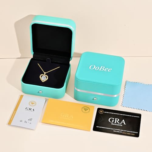 OOBEE Valentines Day Gift Moissanite Heart Pendant Necklace for Women 925 Sterling Silver Fine Jewelry for Her, Ideal Birthday Anniversary Christmas Gift for Women Wife Mom Girlfriend Daughter, 18K Gold Plated (18K-3CT)