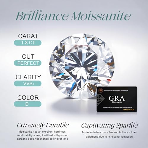【Premium Moissanite】: Moissanite is a lab-created diamond that passes all standard diamond tests. Each stone has been meticulously selected and comes with a GRA moissanite certificate that includes traceability and a unique code. With its round brilliant cut halo design in D color and VVS1 clarity, it shines brilliantly like real diamonds. Compared to cubic zirconia, moissanite jewelry is better suited as a lasting gift for everyday wear