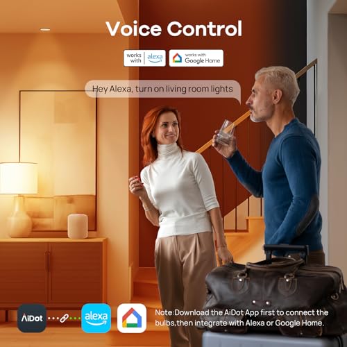 【Hands-Free Voice Control】Smart light bulbs that work with Alexa/Google Home/Siri, you could also use Siri after setting up Siri Shortcuts in AIDOT App. Control your OREiN smart edison bulbs to turn on/off, dim or brighten via simple voice commands, creating a truly customized home lighting experience.