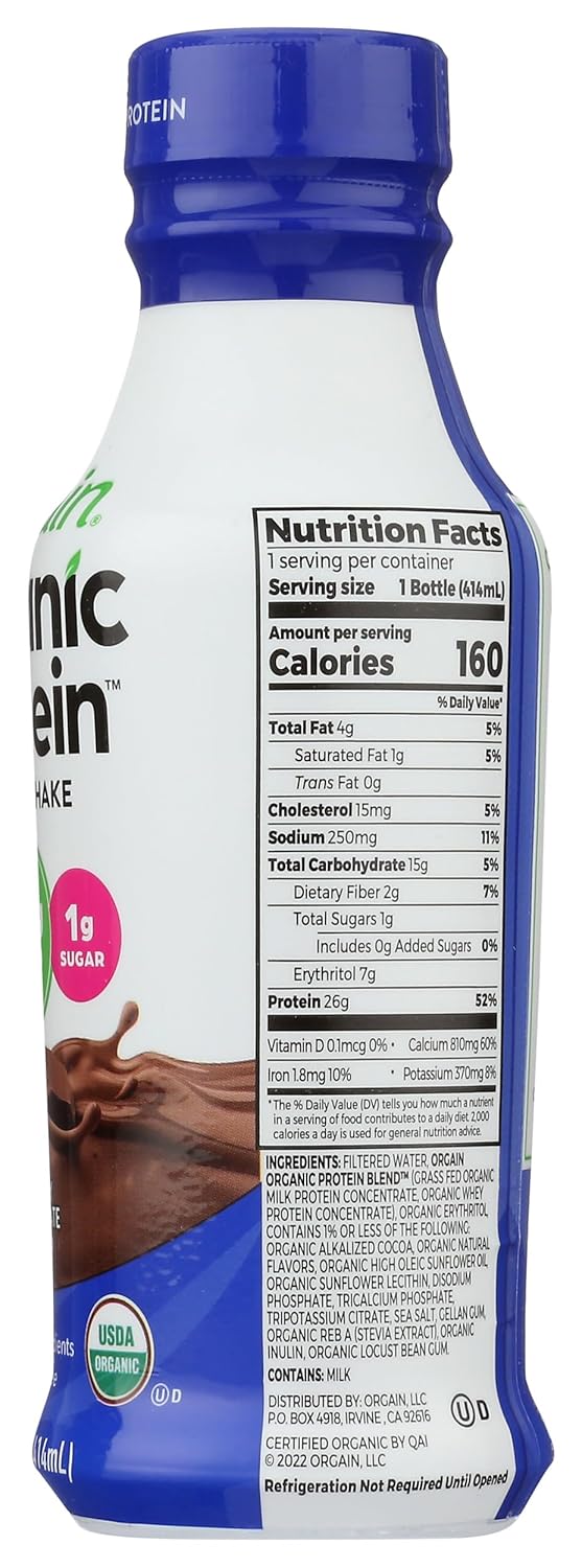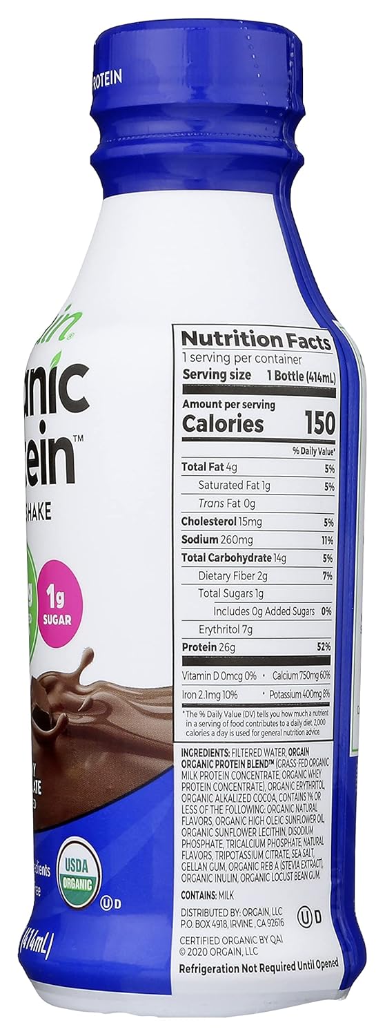 Includes 1 (14oz) Organic Powered Protein Creamy Chocolate Nutrition Shake