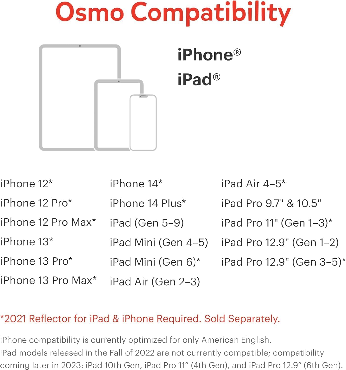 COMPATIBILITY for iPHONE: iPhone 12, 12 Pro, 12 Pro Max, 13, 13 Pro, 13 Pro Max, 14, 14 Plus. No other iPhones are compatible. Requires the Osmo iPad base & 2021 reflector hardware. The minimum iOS needed is iOS 14.0.