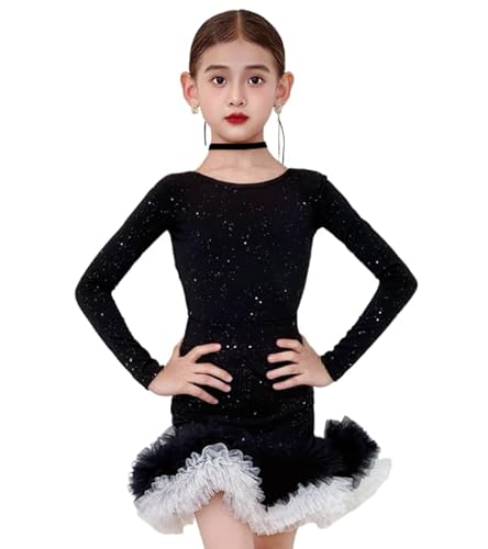 OTMYIGO Girls Long Sleeves Latin Dancing Dress Kids Ballroom Tango Salsa Dance wear Clothing Competition Outfit,Black,120