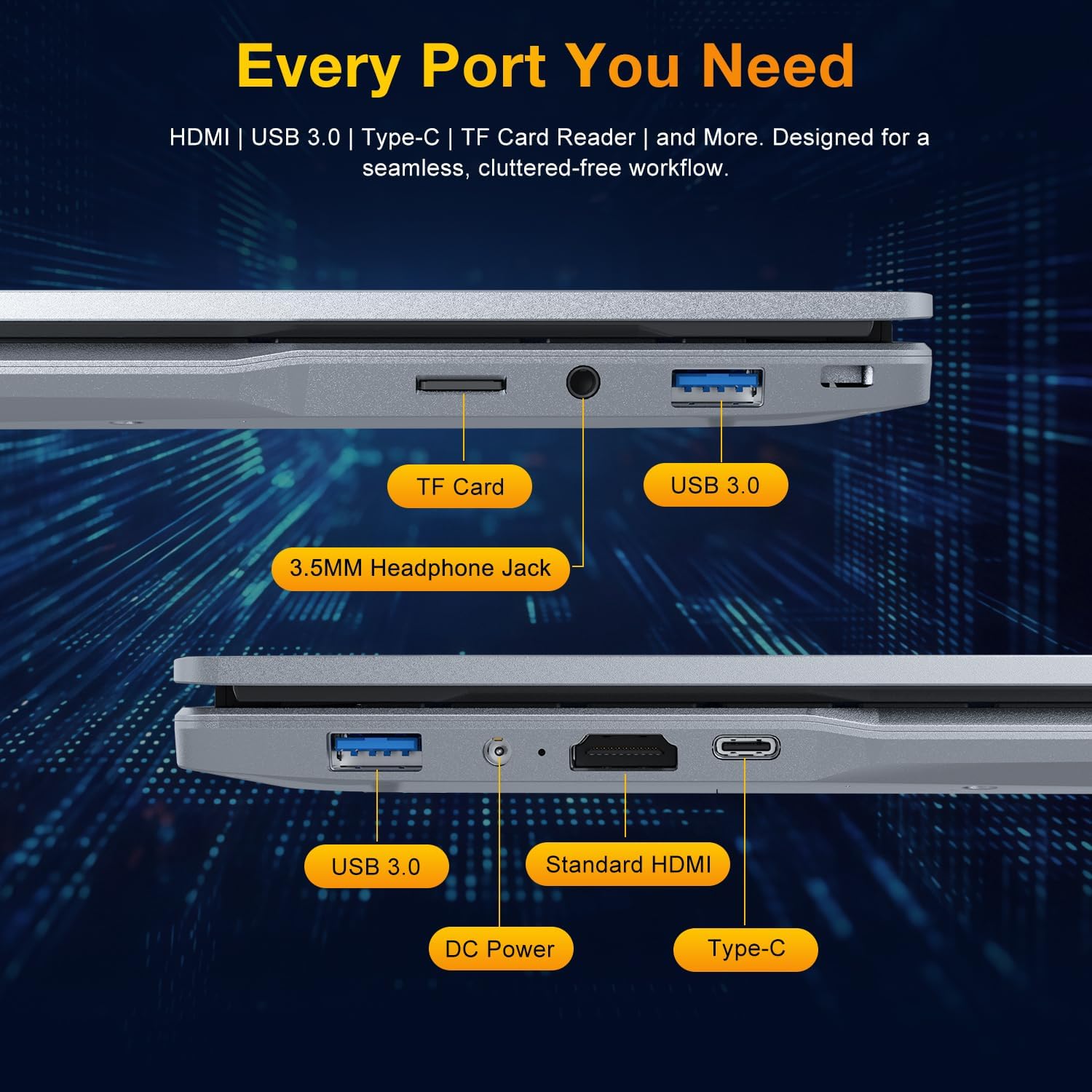 🏆【Complete Connectivity Suite】Stay fully connected with a versatile port selection. It includes 2x USB 3.0, a multi-function Type-C (for charging & data), HDMI, a TF card slot, DC-in, and a headphone jack. Connect all your essential devices and accessories without the need for bulky adapters.
