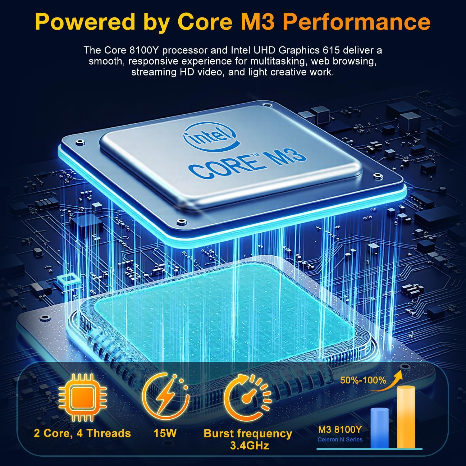 🏆【Balanced Performance for Everyday Use】Powered by the Intel Core m3-8100Y processor, this laptop delivers a smooth and responsive experience for your daily work, studying, and entertainment. The efficient dual-core performance, coupled with active fan cooling, ensures stable operation whether you’re browsing the web, streaming videos, or handling multiple applications.