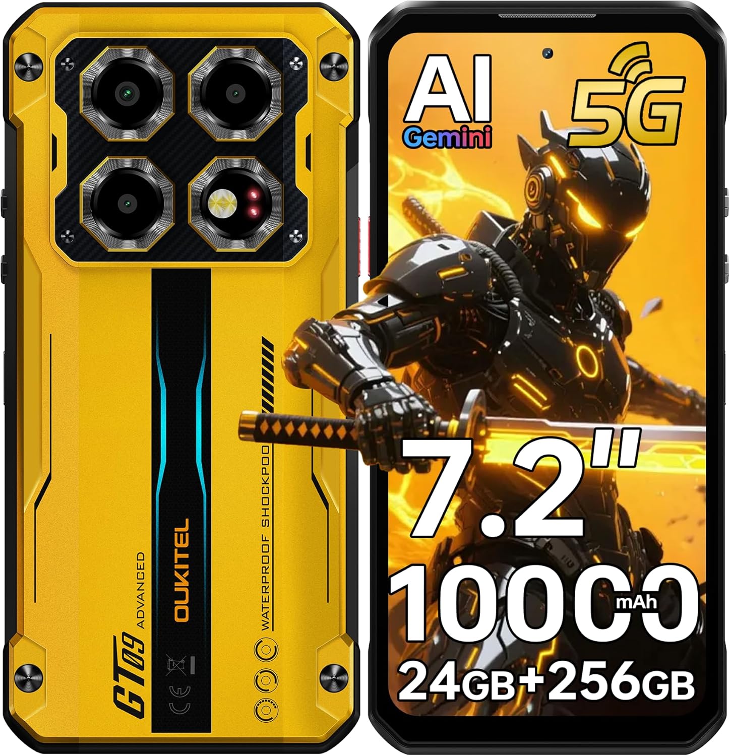 OUKITEL WP60 5G Rugged Phone Unlocked 7.2″ Display, 24GB RAM+256GB ROM/TF 2TB, 10000mAh/33W Smartphone, 108MP Camera, IP68/IP69K Waterproof Phone, NFC/OTG/GPS/120Hz, 5G Dual SIM Android 15 Cellphone