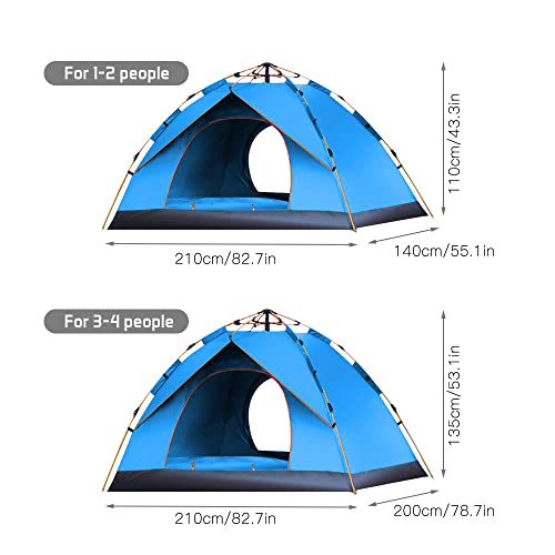 Outdoor Pop Up Tent Water-Resistant Portable Camping Tent for 1-2/3-4 People Family Tent (Dark Green for 3)