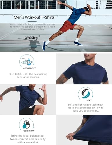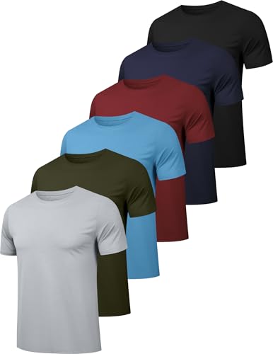 OYGSieg 6 Pack Workout Shirts for Men Short Sleeve Athletic Active Tops Quick Dry Crew Neck T Shirt for Running L