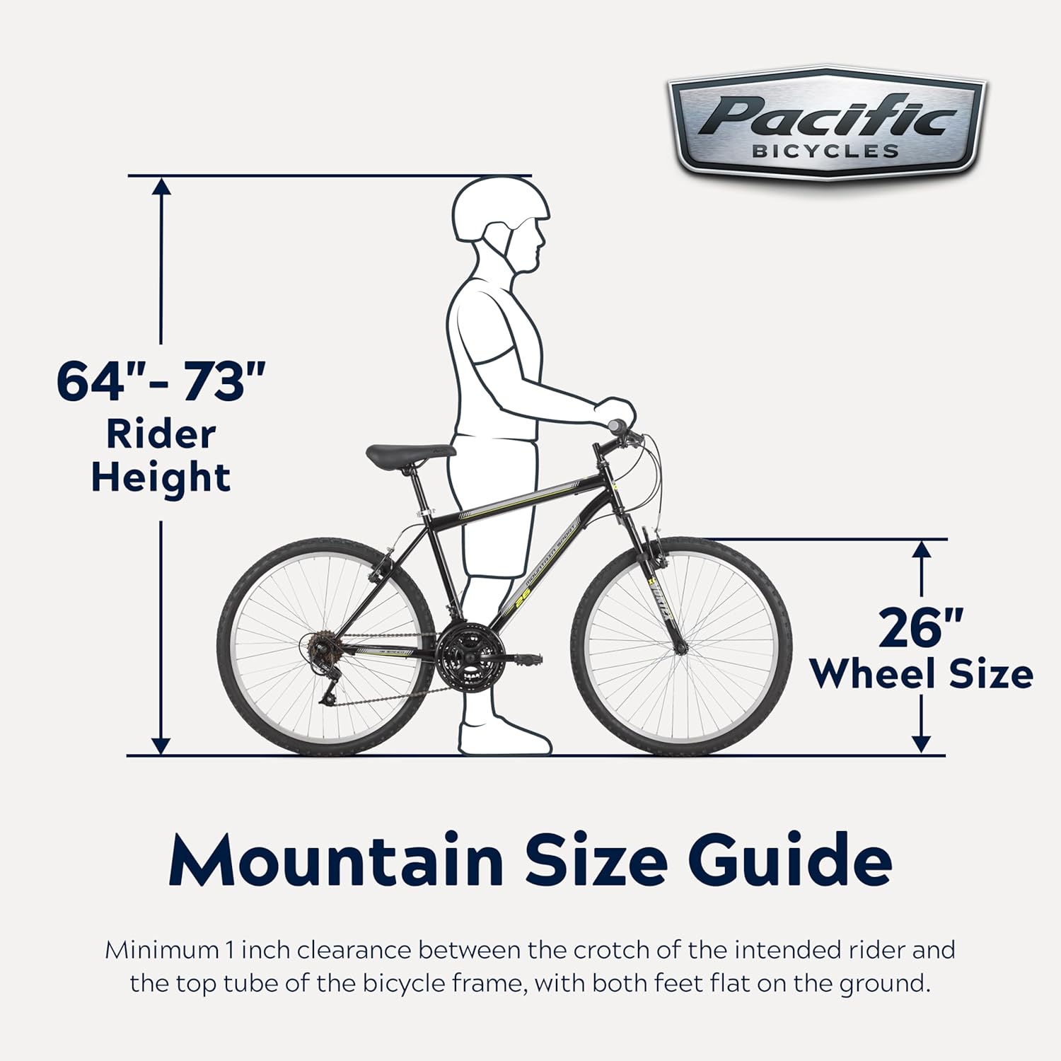 ADULT MOUNTAIN BIKE: Hit the trail with the Mountain Sport by Pacific, built for everyday adventure. Featuring 26-inch wheels, this bike is built for riders from 5’4″ – 6’1″ tall and is great for mountain biking newcomers.