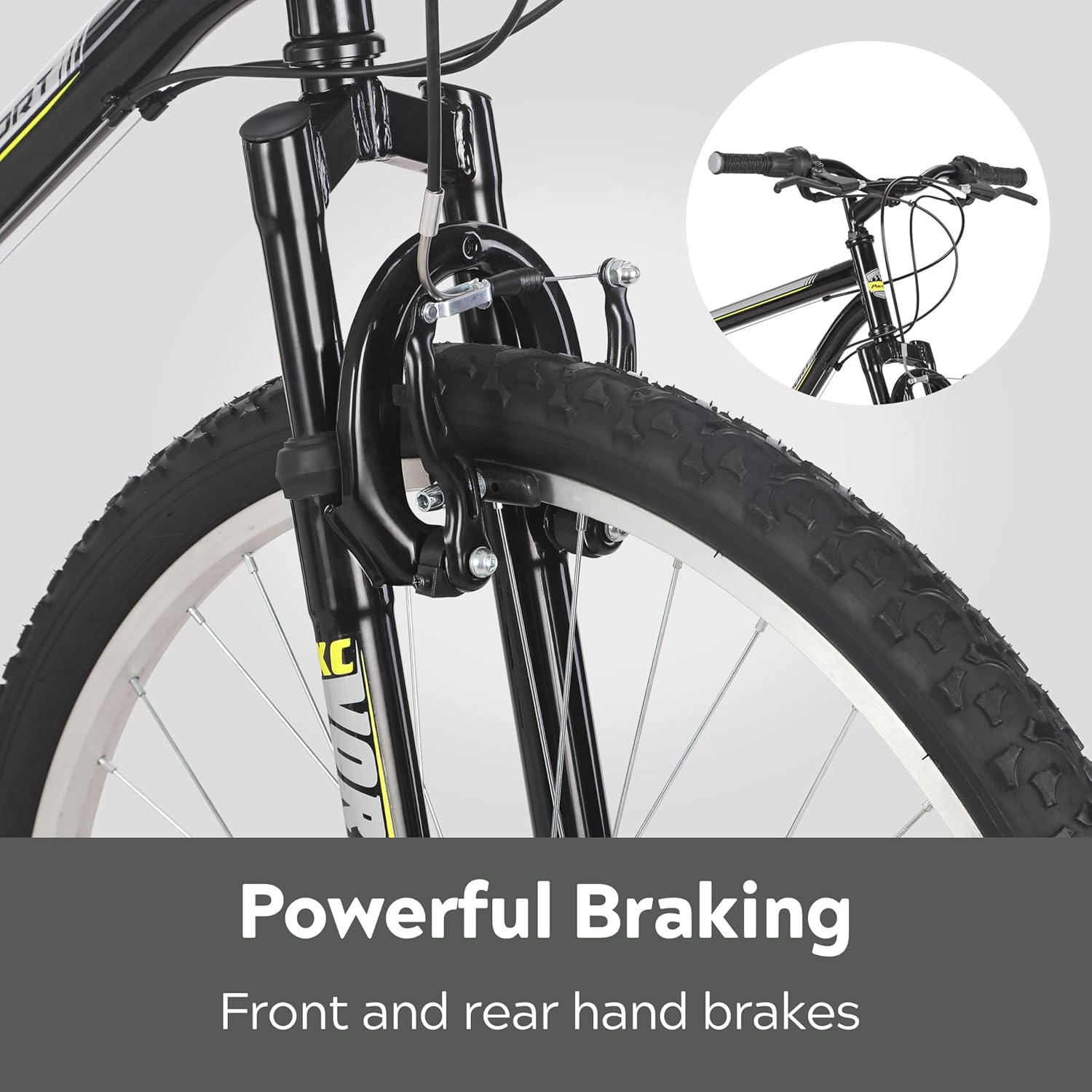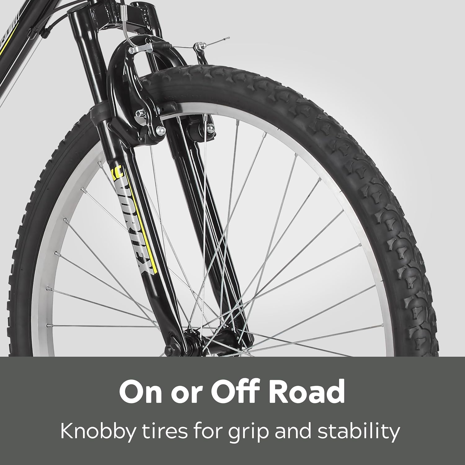 STOP WITH CONFIDENCE: Front and rear linear pull brakes offer dependable stopping power, while knobby mountain tires give you the traction you need on dirt, gravel, or rugged trails.