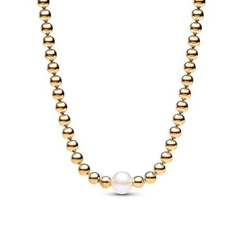 PANDORA Treated Freshwater Cultured Pearl & Beads Collier Necklace – 14K Gold-Plated Necklace with Treated Freshwater Cultured Pearl for Women – Jewelry for Women – Includes Gift Box – 17.7″