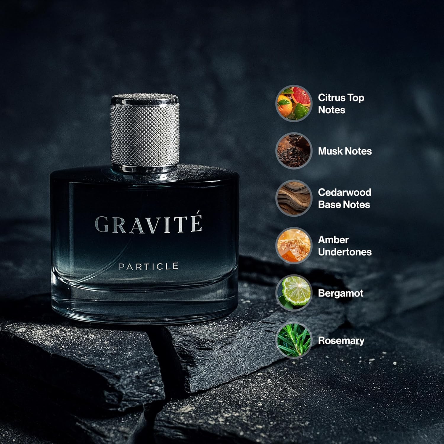 Particle Gravité Cologne Spray for Men, Long Lasting Fresh Scent, Men’s Perfume Woody Citrus Fragrance, Notes of Pepper, Rosemary, Grapefruit, Cedar, Cashmere & Musk, 3.38 FL OZ Bottle