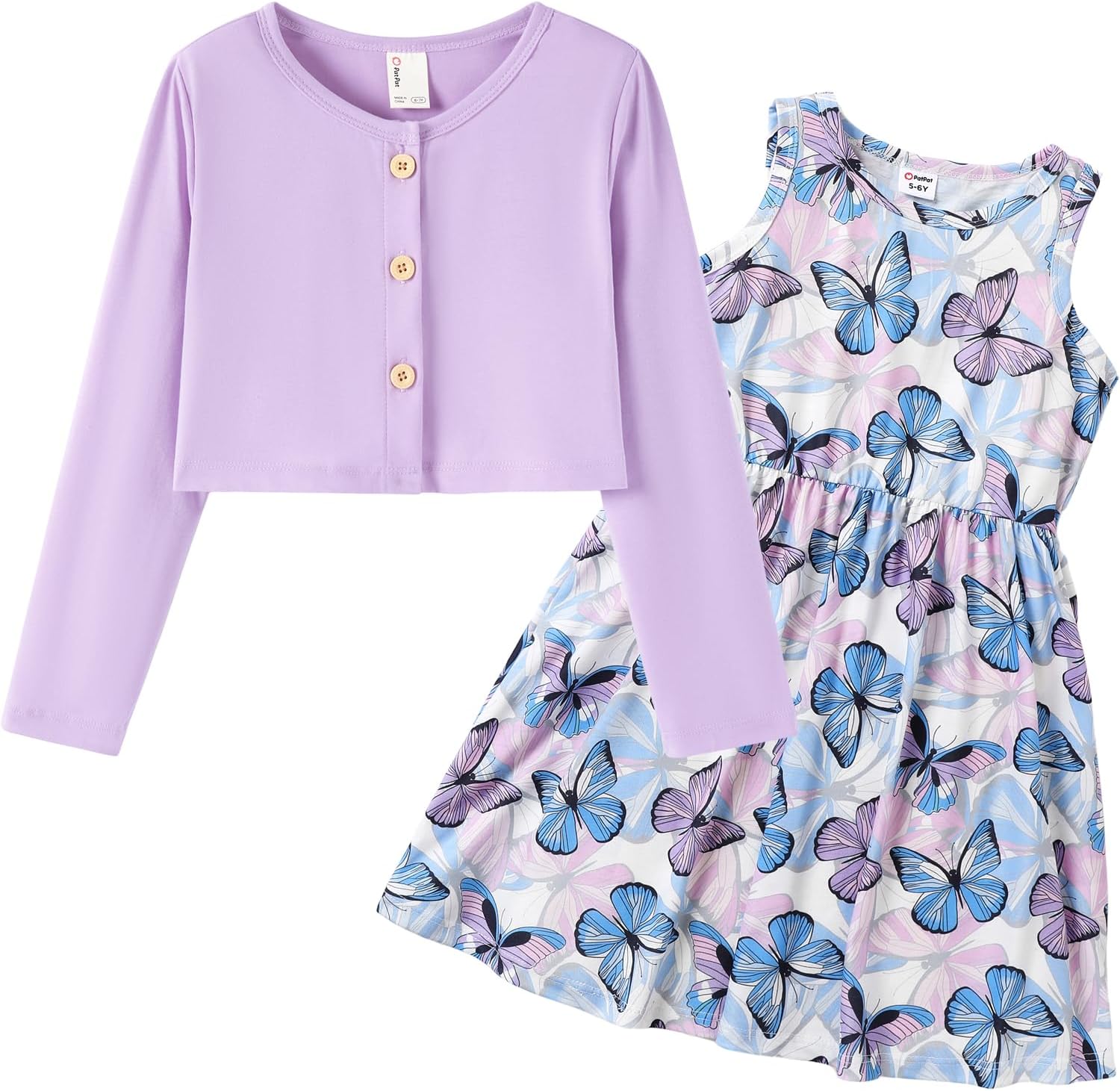 PATPAT Toddler Girl Dress 2 Piece Girl Sleeveless Dress and Cotton Cardigan Set with Pockets, 18M-12Y