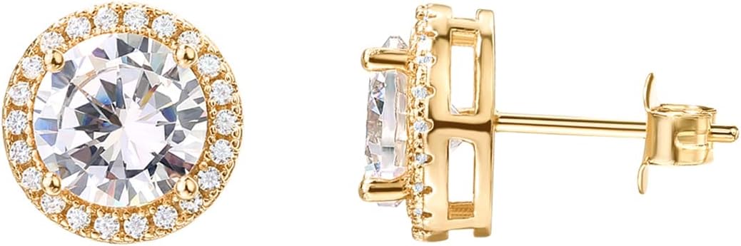 PAVOI 14K Gold Plated Halo CZ Stud Earrings for Women – 925 sterling silver Post Cubic Zirconia Earrings – Trendy Simulated Diamond Studs for Men Women