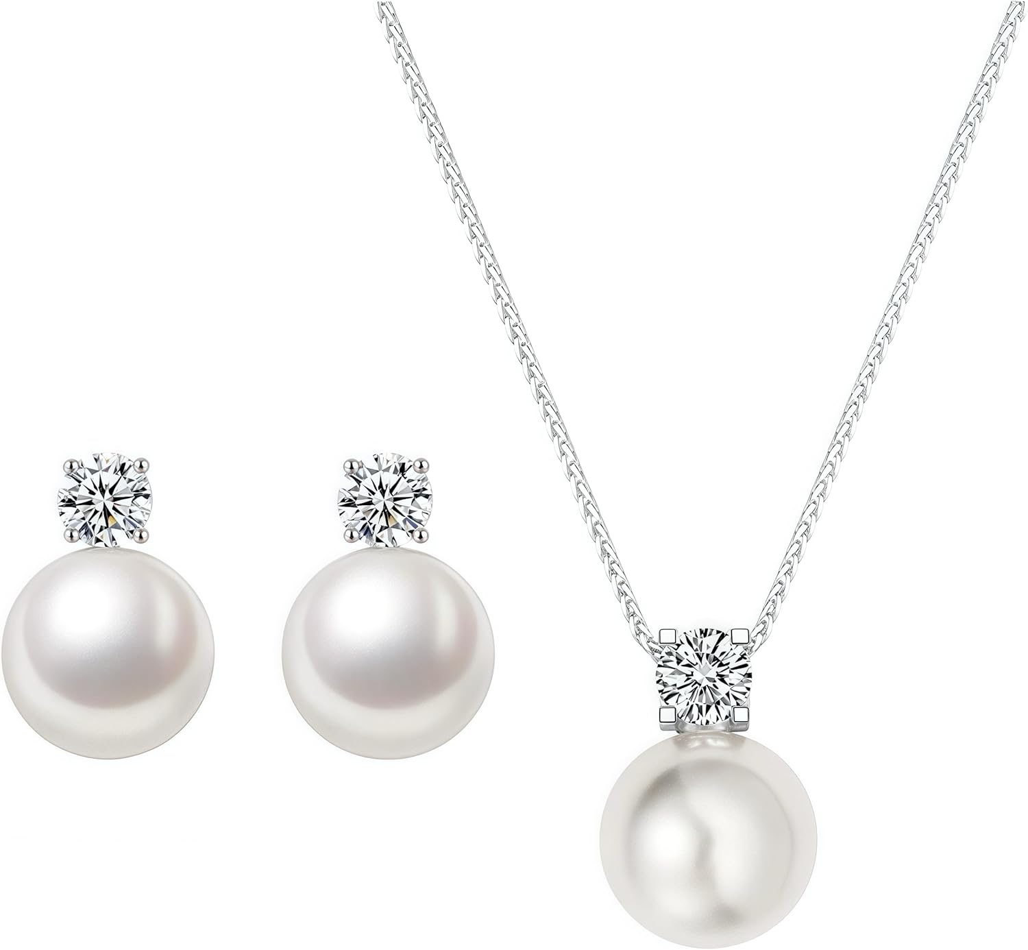 Pearl Earrings Necklace Set Silver Pearl Stud Earrings for Women Minimalist Pearl Earring Necklace Trendy Hypoallergenic Wedding Earrings for Women
