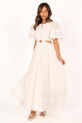 Price: $139.00(as of Jan 13, 2026 20:23:05 UTC – Details) maxi length dressround neckline with trim detail and back button closeinvisible side zip in topshort sleevesfront cutout with ring design feature [product_summary]