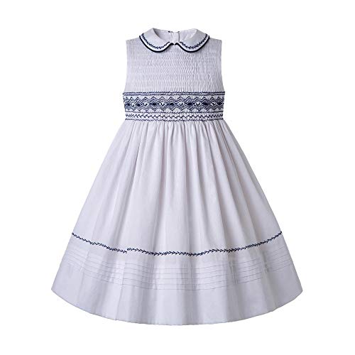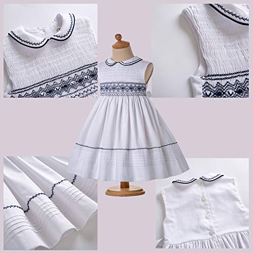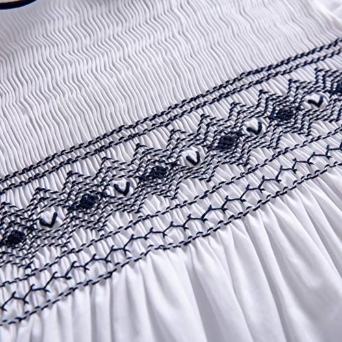 Beautiful designed with hand smocked stitching lines, Peter pan collar with navy embroidery
