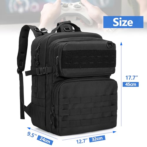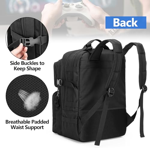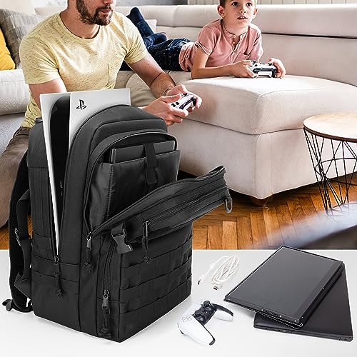 PGmoon Tactical Game Backpack Compatible with PS5/PS5 Slim/PS5 Pro/PS4 Console, Travel Carrying Case Storage Bag for 15.6″ Laptop, Portable Monitor, Controller and Other Gaming Accessories