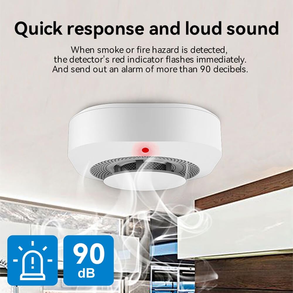 【Dual Sensor Technology】Featuring dual-sensor photoelectric technology, this device has a lifespan of up to 10 years and excels at detecting slow-burning fires, such as those involving soft furnishings or electrical appliances. It is highly sensitive to faint smoke and slow-smoldering fires, has a low false alarm rate, and has an extended service life